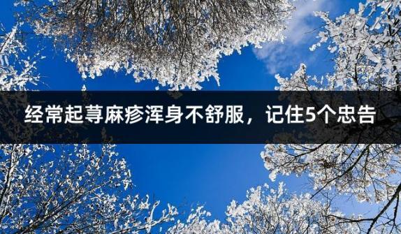 蕁麻疹發作的時候很癢,但是不能用手去抓,避免造成感染。身上經常起蕁麻疹,記住這5個忠告。經常起蕁麻疹渾身不舒服,記住5個忠告。蕁麻疹有50%的是沒有誘因的,就是找不到誘因,這種叫慢性蕁麻疹。膽堿性...