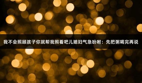 兒媳婦不高興的時候,還總是甩臉色。兒媳婦說:媽,我不會照顧孩子孩子,你就幫我照看。這下大家都急了,兒媳婦就對著婆婆大叫,你就不會等孩子吃完了之后再把你的粥喝起來嗎。兒媳婦聽得目瞪口袋,說完周芬頭...