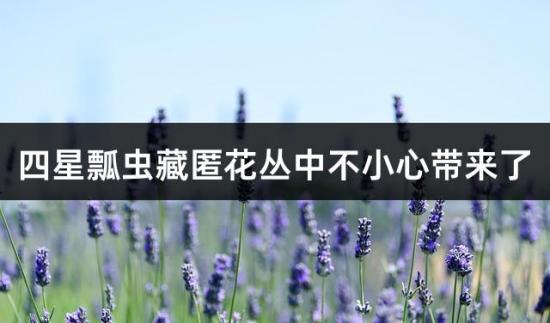 四星瓢蟲藏匿花叢中不小心帶回來了……。如果按星劃分,那么1、赤星瓢蟲、大紅瓢、二星瓢蟲、四星瓢蟲、六星瓢蟲、七星瓢蟲、十二星瓢蟲、十三星瓢蟲等瓢蟲屬于益蟲。異色瓢蟲捕食范圍廣,主要以捕...