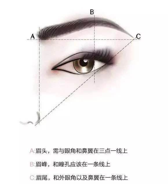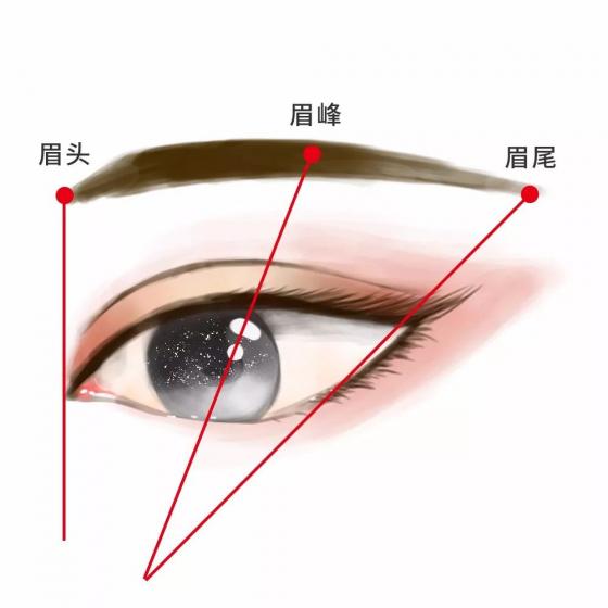 ·找到鼻翼和眉頭的連接點,作為眉頭的位置;找到眉峰的點,作為眉峰的位置;找到鼻翼和眉尾的連接點,作為眉尾的位置。你知道眉峰的位置嗎?眉毛的走向是不是應該朝這個方向?從眉頭到眉尾,眉毛的輕重、長短、層次都應該有所體現。