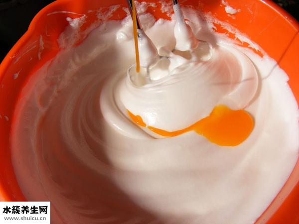 9、蛋白中加入另一半蛋白,輕輕翻拌均勻